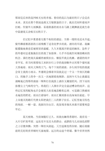 的场⾯,⼀帧⼀幕,我都历历在⽬。我发现幸福从来都不需要刻意