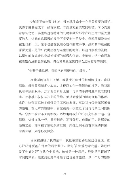 的隐喻。在⽆声的缝制中,百家被再⼀次拉近了我与母亲之间的距