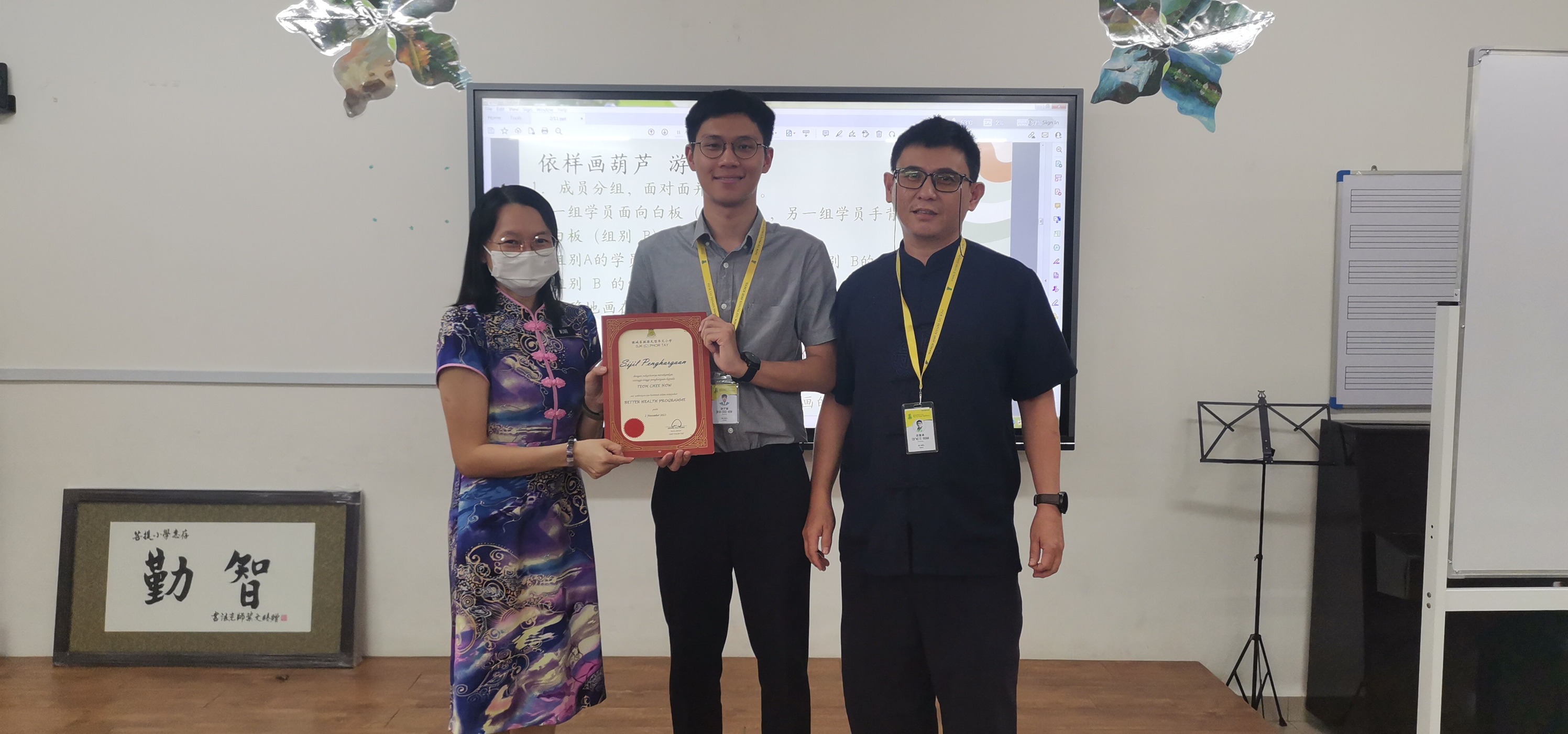 本校辅导老师张子镐到菩提小学给五、六年级学生做辅导讲座,主讲主题包括情绪管理、自我肯定和沟通技巧。