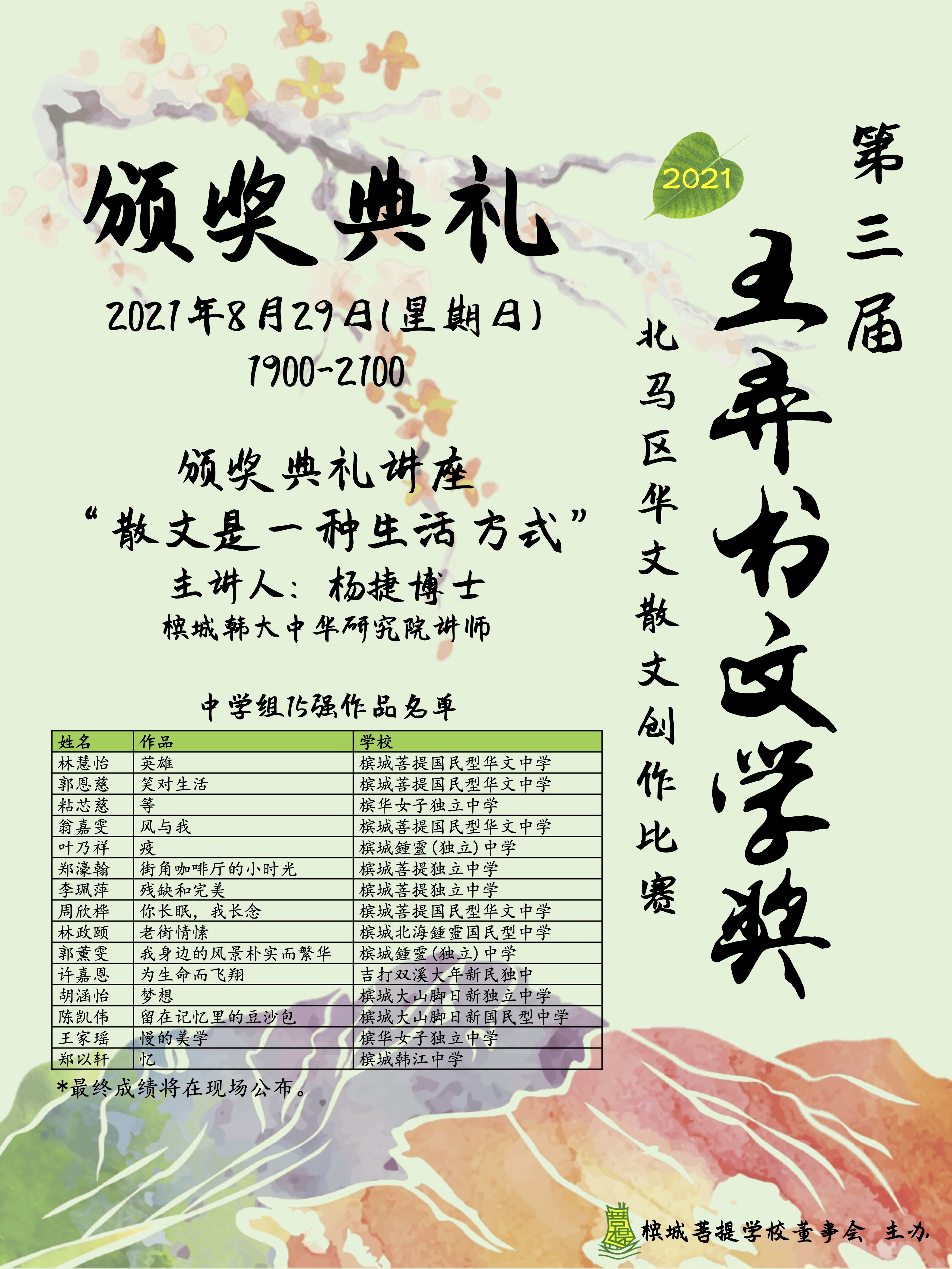 2021《王弄书文学奖》二审成绩