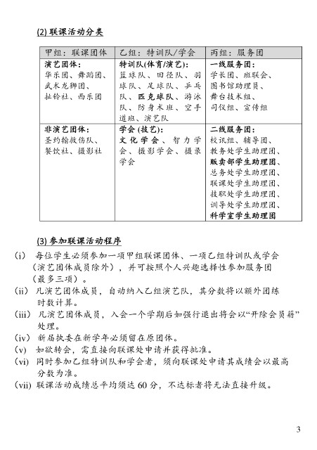 (vii) 联课活动成绩总平均须达 60 分,不达标者将无法直接升级。