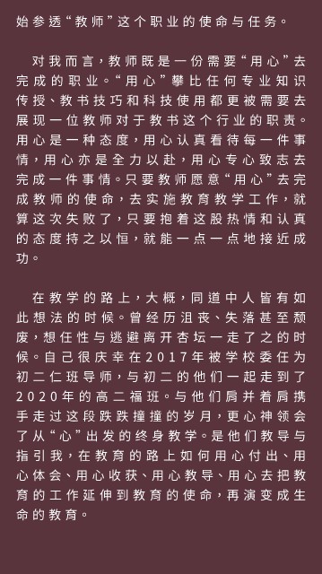 了 从“ 心 ”出 发 的 终 身 教 学。是 他们 教 导 与