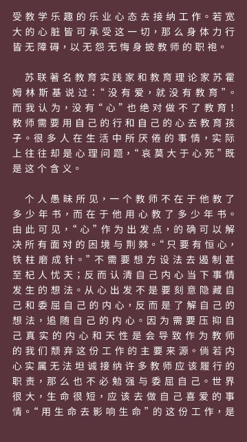 受教学乐趣的乐业心态去接纳工作。若宽