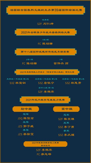 先修班一年级组 第2名 先修班一年级组 第2名 先修班一年级组 第4名