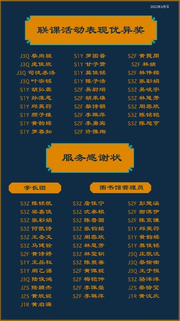 联课活动表现优异奖