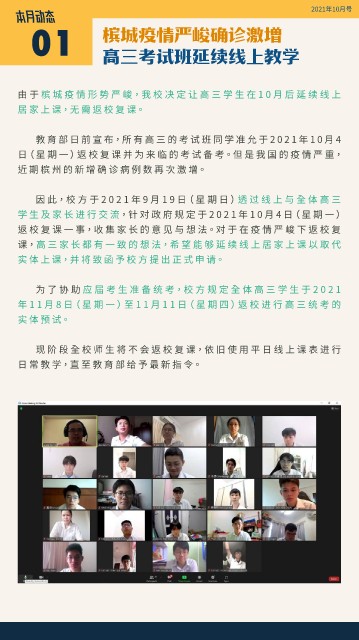 由于 槟城疫情形势严峻,我校决定让高三学生在10月后延续线上