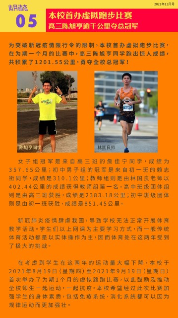 为突破新冠疫情限行令的限制,本校首办虚拟跑步比赛,