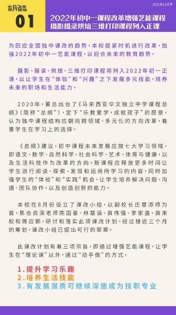 为回应全国独中课改的趋势,本校捉紧时机进行改革,加
