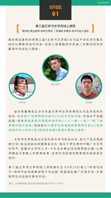 创作比赛教师组优秀奖,而高三郑濠翰同学和高二李珮萍同学则
