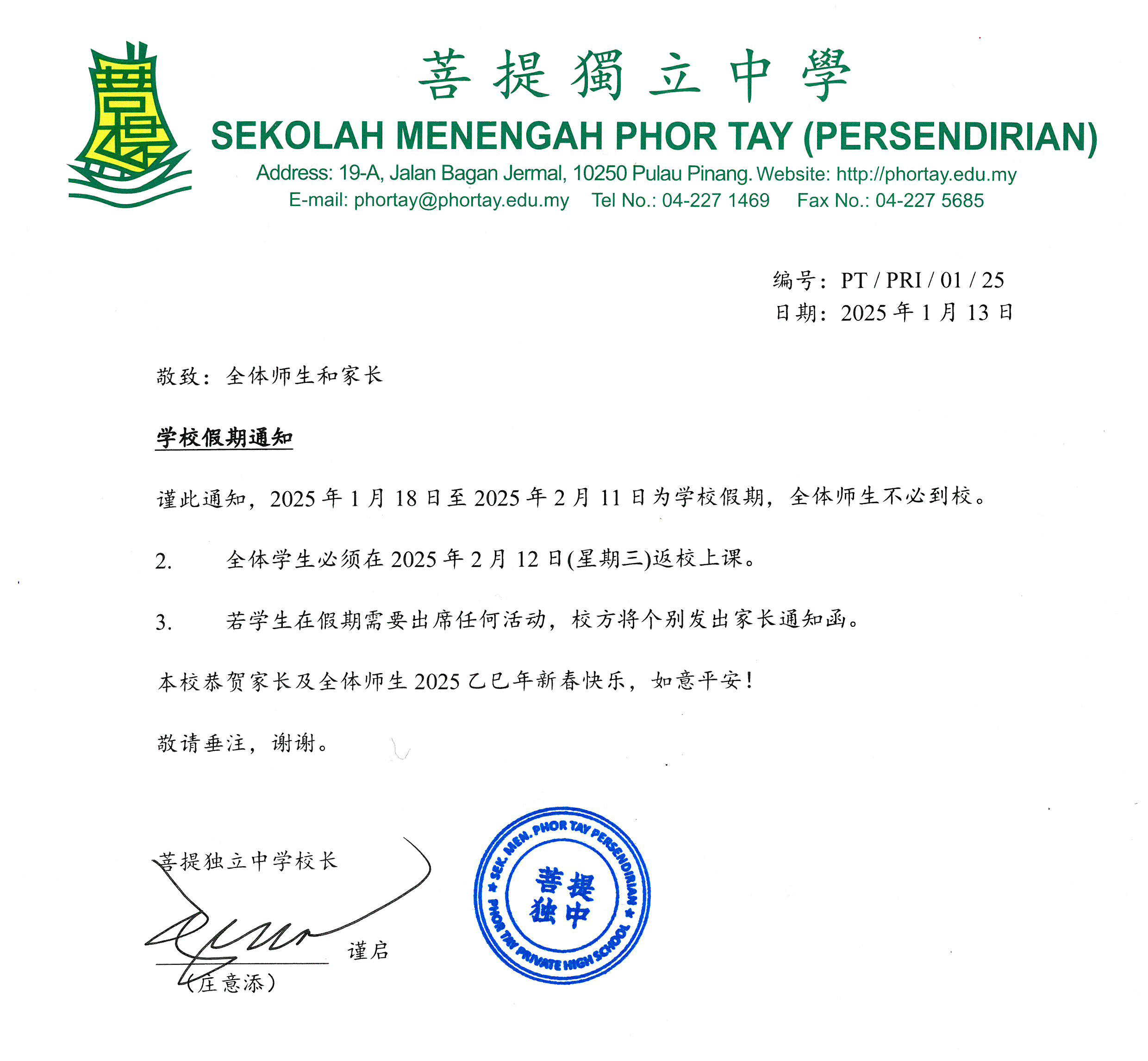 学校假期通知