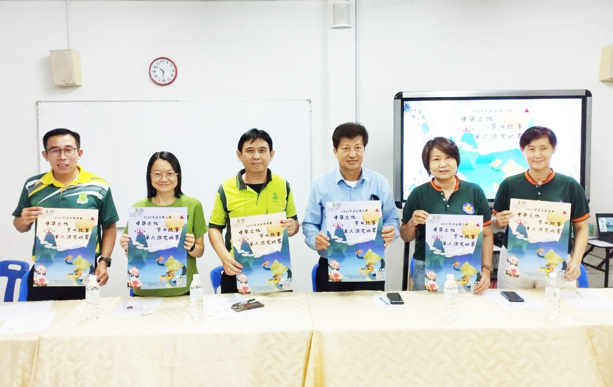 全槟中小学中华文化节日故事单人演艺比赛记者会:(左起)曾伟杰、黄邽淓、庄意添、彭永添、胡欣华及吴允行欢迎学生踊跃报名参加。