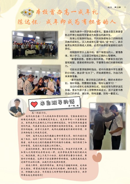 本校为⾼中⼀同学⾸办成年礼,董事会副主席拿督