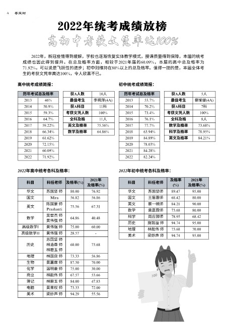 成 绩 也 因 此 得 到 提 升 。 在 总 及 格 率 ⽅ ⾯ , 相 较 于2021 年 届 的60.09% , 本 届 的 ⾼ 中 总 及 格 率 为