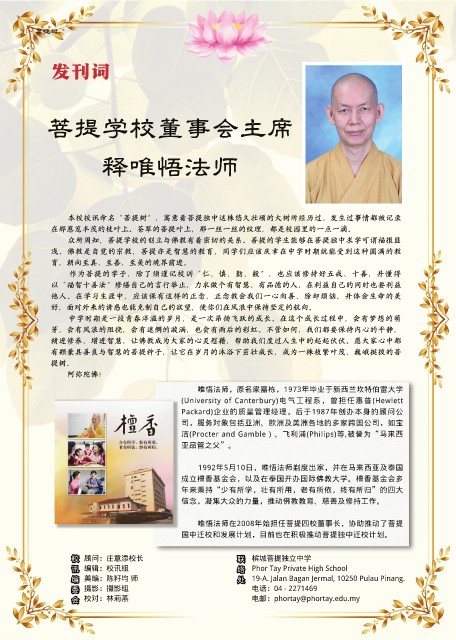 校 顾问:庄意添校长 联 槟城菩提独立中学