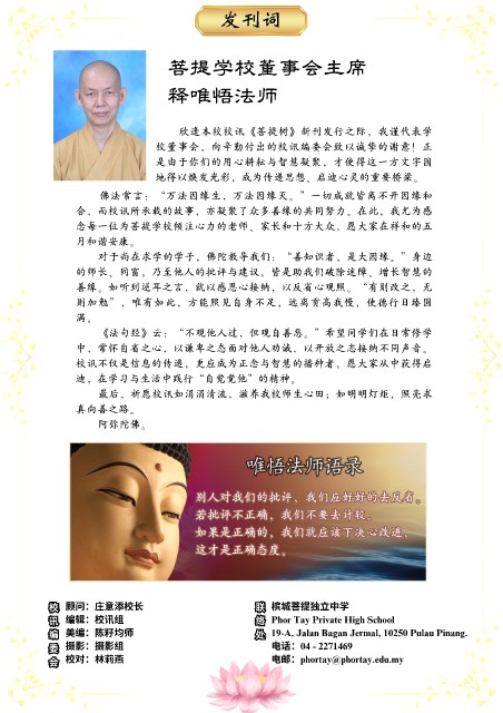校 顾问:庄意添校⻓ 联 槟城菩提独⽴中学