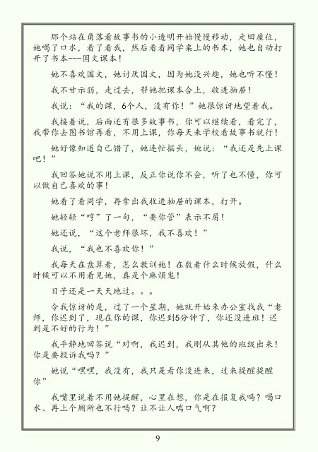 我不甘示弱,走过去,帮她把课本合上,收进抽屉!