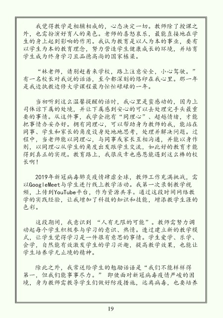 2019年新冠病毒肺炎疫情肆虐全球,教师工作充满挑战,需