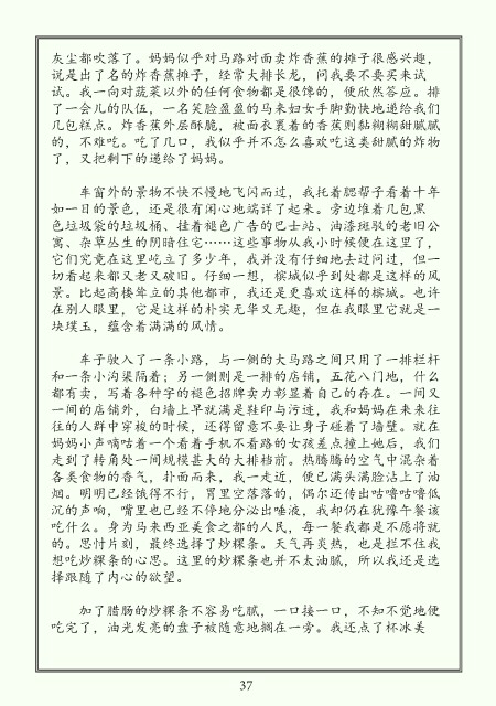 灰尘都吹落了。妈妈似乎对马路对面卖炸香蕉的摊子很感兴趣,