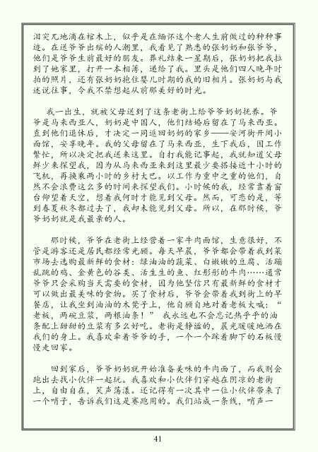 可以做出最美味的食物。买了食材后,爷爷会带着我到街上的早