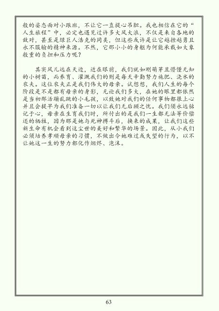农夫。这位农夫正是我们伟大的母亲。试想想,我们人生的每个