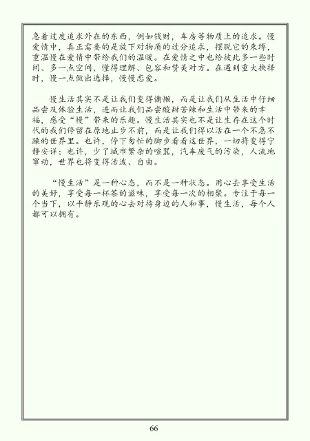 福,感受“慢”带来的乐趣。慢生活其实也不是让生存在这个时