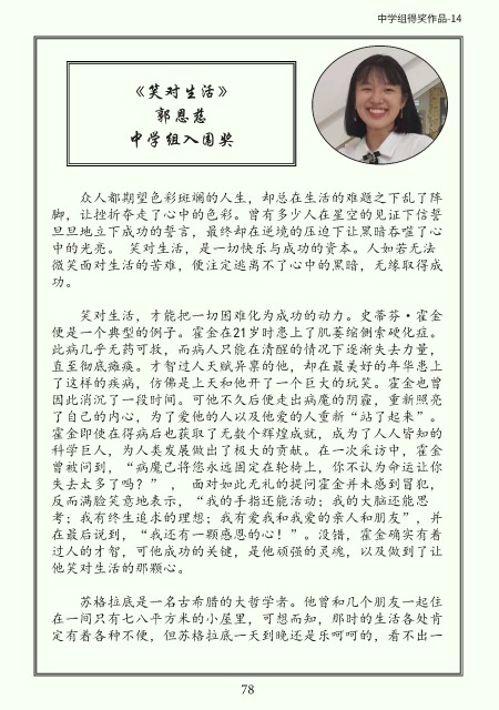 中的光亮。 笑对生活,是一切快乐与成功的资本。人如若无法