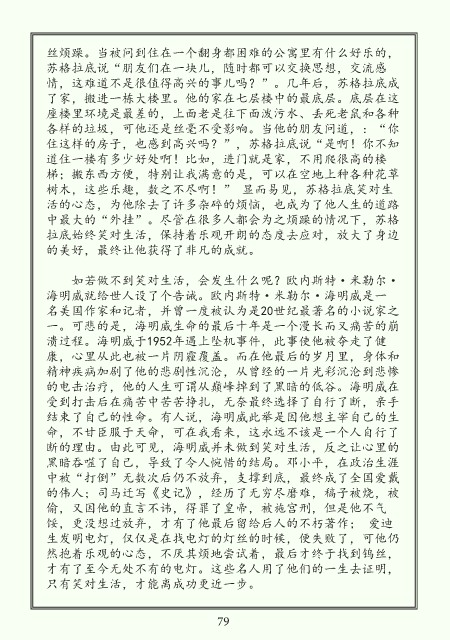 断的理由。由此可见,海明威并未做到笑对生活,反之让心里的