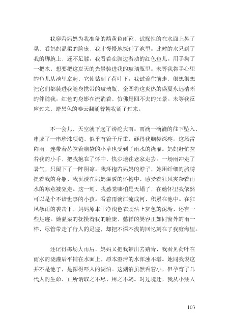 还记得那场⼤⾬后,妈妈又把我带出去踏青,我看见荷叶在