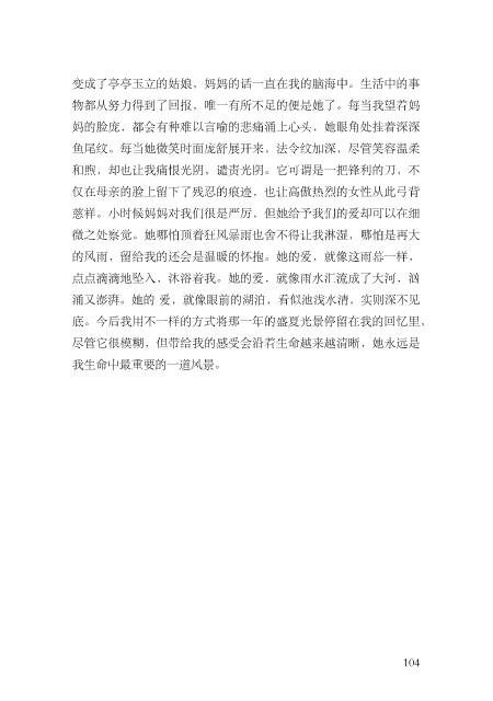 物都从努⼒得到了回报,唯⼀有所不⾜的便是她了。每当我望着妈