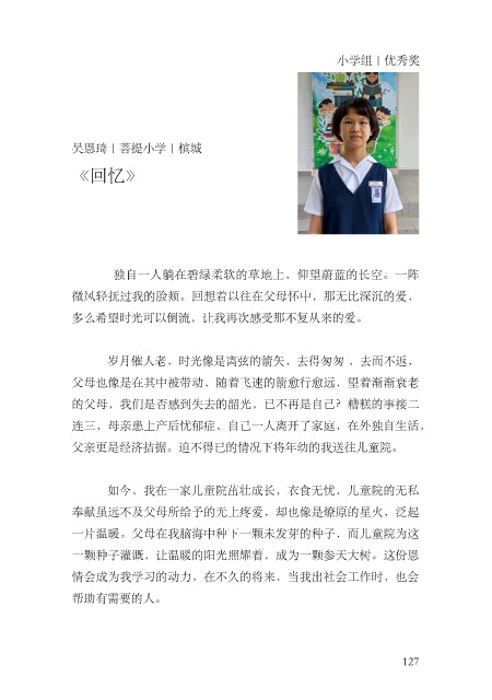 如今,我在⼀家⼉童院茁壮成长,⾐⾷⽆忧,⼉童院的⽆私