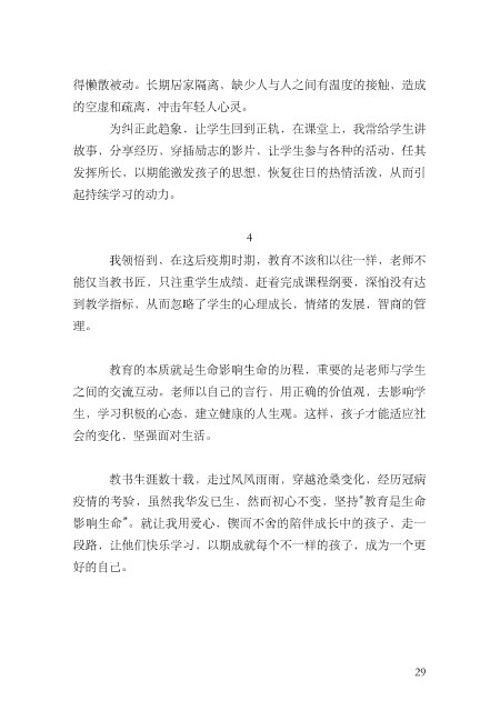 疫情的考验,虽然我华发已⽣,然⽽初⼼不变,坚持“教育是⽣命