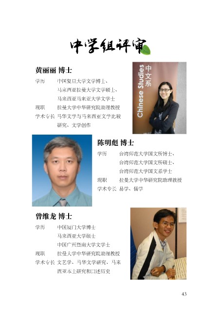 学术专长 ⽂艺学、马华⽂学研究、马来