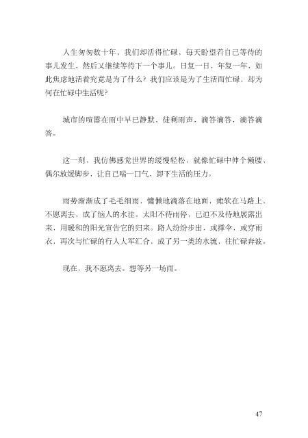 ⾐,再次与忙碌的⾏⼈⼤军汇合,成了另⼀类的⽔流,往忙碌奔波。