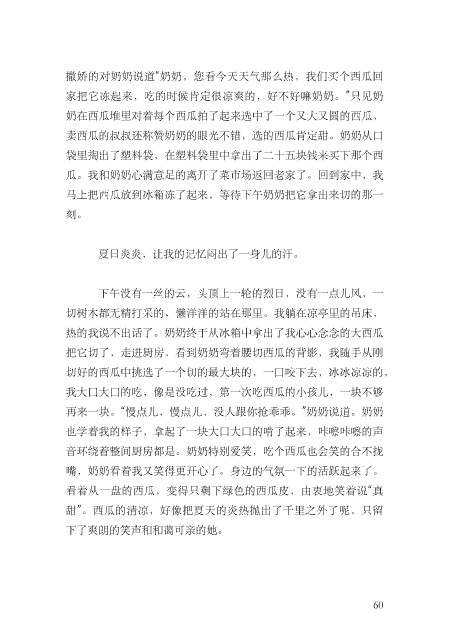 ⽠。我和奶奶⼼满意⾜的离开了菜市场返回⽼家了。回到家中,我