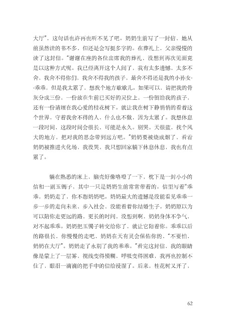 ⼤厅”,这句话也许再也听不见了吧。奶奶⽣前写了⼀封信,她从