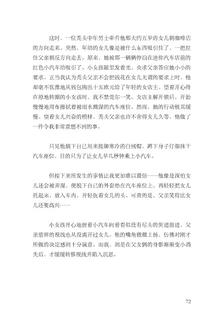 所做的决定感到⼗分满意。⽽我,则是在⽗⼥俩的⾝影渐渐变⼩消