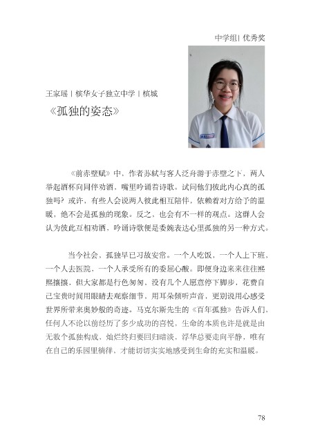 王家瑶 | 槟华⼥⼦独⽴中学 | 槟城