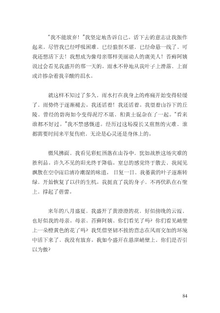 中活下来了,我没有放弃。我如今盛开在悬崖峭壁上,你们是否引
