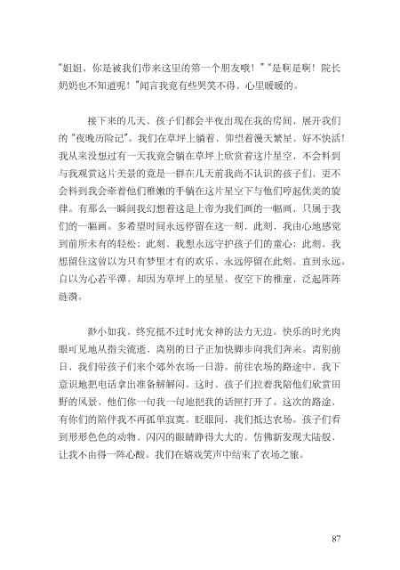 让我不由得⼀阵⼼酸。我们在嬉戏笑声中结束了农场之旅。