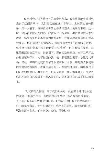 的停留…”脑海之中有⼀⽚隐蔽林后的草坪,有我最珍惜的朋友。