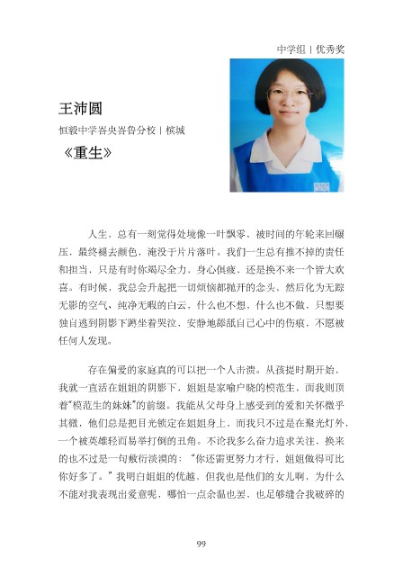 我就⼀直活在姐姐的阴影下,姐姐是家喻户晓的模范⽣,⽽我则顶