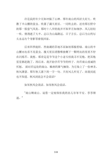 星星都赶跑了。再后来,我开始学着爷爷的样⼦,向着南⼭虔诚的