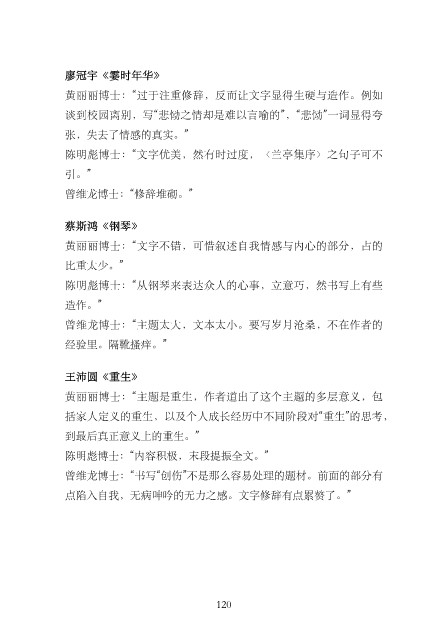 黄丽丽博⼠:“⽂字不错,可惜叙述⾃我情感与内⼼的部分,占的