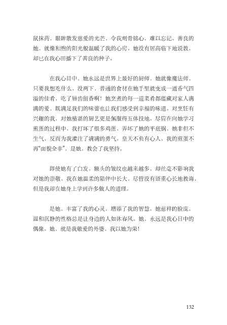 对她的崇敬。我在她温柔的陪伴中长⼤,尽管没有语重⼼长地教诲,