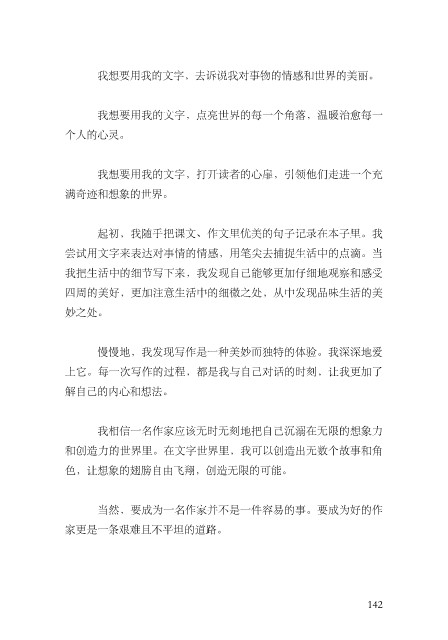 慢慢地,我发现写作是⼀种美妙⽽独特的体验。我深深地爱