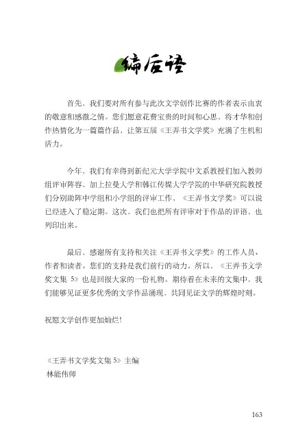 Page 168 - 第五届王弄书文学奖文集2023
