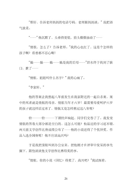 “情航,你的⼩说《回忆》得奖了,⾼兴吧?”我试探着。