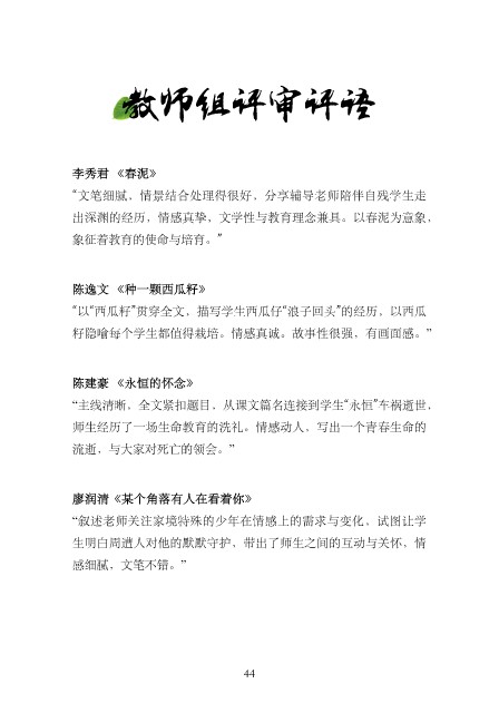 籽隐喻每个学⽣都值得栽培。情感真诚。故事性很强,有画⾯感。”