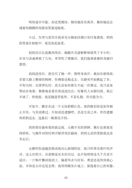 不过,失望与悲伤在我看见⼩姨家挂满⽩布时卷袭我,奶奶
