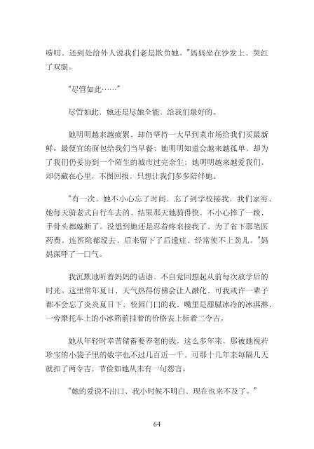 “有⼀次,她不⼩⼼忘了时间,忘了到学校接我,我们家穷,